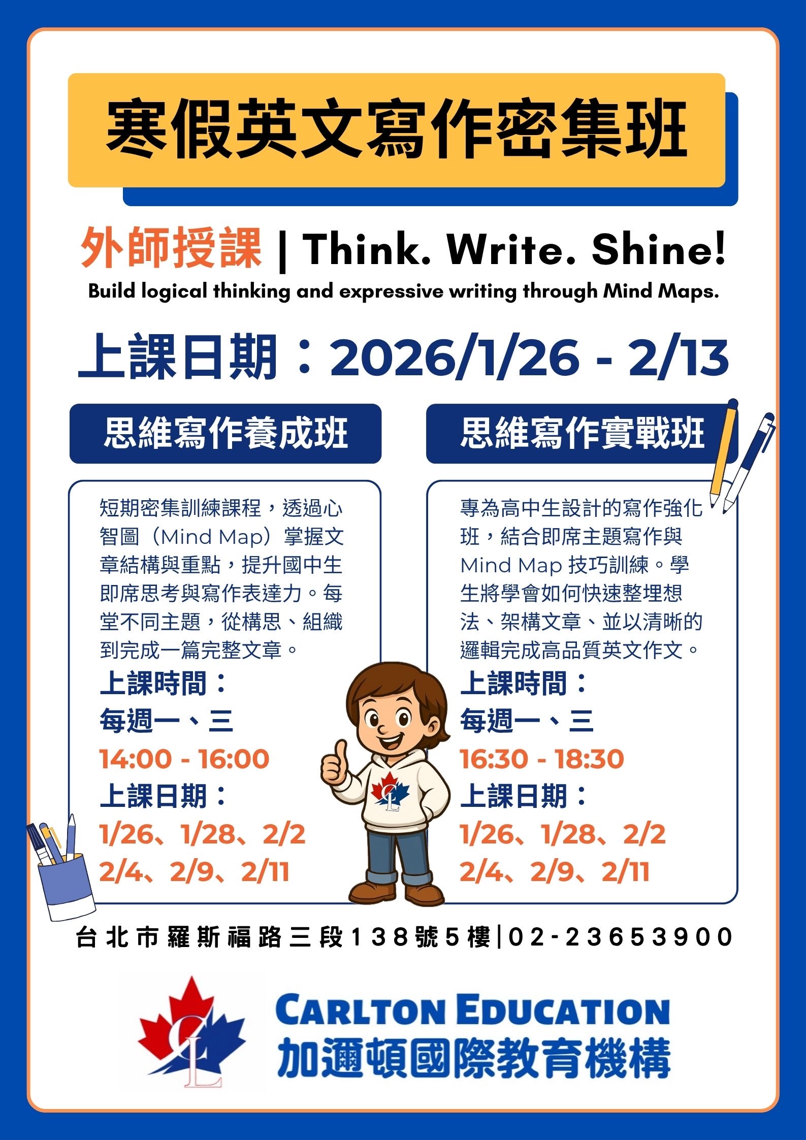 Carlton 2026 Winter Camp-寒假英文寫作密集班